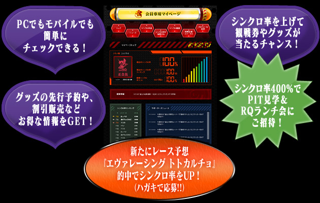 会員専用マイページはEVA RACING SUPPORTERS 2013の方の専用のサイトです。
