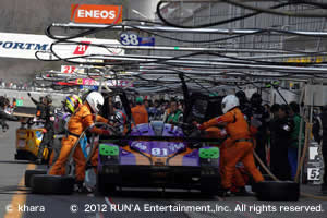 ここまでにピットインを済ませたチームもあるが、トラブルや、選択ミスのタイヤ交換等予定外のピットインで、給油、ドライバー交代のルーティンピットは300クラス最初のピットインである。昨年は、オートポリス以外はタイヤ無交換作戦を取った上、給油時間も短かった為、ドライバー交代時間がピットストップのカギであった。だが今年は、レース距離が長くなった事と、パワーアップに伴い消費燃料が増えた事、タイヤ交換を行う事等でピットストップが長くなる。ドライバー交代も十分な余裕ができた。また初戦という事もあり、全スタッフがミスの無い、確実な作業を目標とした結果、43秒のピットストップ(抜群に早いわけではないが悪くはない。)で加藤選手を送り出すことができた。