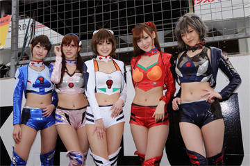 3年間に渡り綾波レイ役RQを務めました水谷望愛ちゃん、アスカ役RQを務めました千葉悠凪ちゃん、アスカ役RQと今シーズンはシンジ役RQも務めました野呂陽菜ちゃん、そして2年間に渡りマリ役RQを務めました高塚麻奈ちゃん、カヲル役RQを務めました采女華ちゃん、この5人はサーキットで注目を集め人気レースクィーンとしてサーキットにとどまらずRQを超えた活躍の場を与えていただきました。