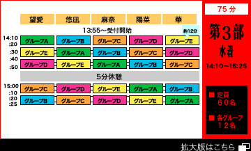 ■ 撮影グループにつきましては当日受付の際にお渡しいたします参加証にてご確認お願いいたします。