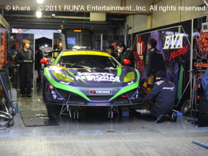 今シーズンより全戦ノックアウト方式となった予選、15分間のQ1予選で上位13台を選抜し、その後12分間のQ2でグリッド順位を決定する。練習走行からの雨は相変わらず降り続き、コースの各所に水溜りができ、Q1は10分遅れで開始された。 Q1を担当する加藤選手、タイヤを早く温める為、開始と同時にピットを離れる・・・が、それは各マシン同じ。Q1開始早々、スピン車両が発生し、回収の為赤旗中断となり、アウト、インで戻る加藤選手だが、既に1周通過できたマシンもあり、今回のピットは、もっとも最終コーナーよりのピットの為、コースインまでも少し時間がかかり、その差が現れた。 Q1が再開されたが、なかなかグリップの上がらないタイヤに・・・加藤選手「全然グリップしない!これ本当にソフト(タイヤ)?」という無線。無論“今回用意”した中ではソフトである。 計測4周目の1′49″374で12番手。僅かにグリップも上がり、更にアタックに入ろうかという所で、再び赤旗。5分の中断の後、残り3分!で再開されたが“1ラップアタック”である。各マシン、我先にとコースインするが、そうした焦りが、三度目赤旗を出す事となり、各マシン、タイムアタックにすること無くピットイン、そのままQ1は終了となり、12番手で辛くもQ2にコマを進める事ができた。 この雨は、次の500クラスのQ1にも、同様の混乱を生み、300のQ2が開始されたのは、当初のスケジュールから約1時間遅れとなった。Q2を担当した高橋選手、2周ほど周回した辺りで・・・高橋選手「ワイパー動かない!左で止まったまま!」フロントウィンドウは撥水剤がコーティングされているとは言え、視界不良は必至。しかしピットに戻り、点検する時間は無い。高橋選手「このまま走る。」タイムは52秒台から51秒台へ・・・51″412のベストで11番手まで上がるが、最終的には12番手(12番グリッド)となる。 その後500クラスのQ2は、天候悪化に伴いキャンセルされるほどの、荒天の予選となった。