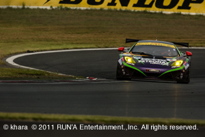 その後は判で押したように41秒台で周回する2号車エヴァRT初号機アップルMP4-12Cだが、25周を終え早めのルーティンピット。燃料フルチャージ、と言っても、3ピットにした事で、1スティントでの消費燃料は減った為給油時間は短い。タイヤ4本交換、ドライバーは交代せず。