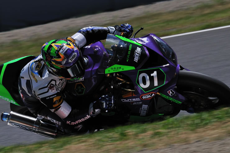 鈴鹿8耐参戦マシン、エヴァRT初号機トリックスターの展示。