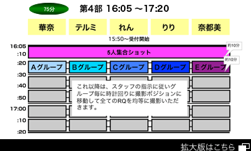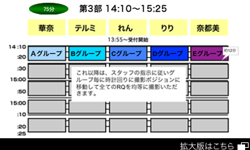■ 撮影グループにつきましては当日受付の際にお渡しいたします参加証にてご確認お願いいたします。