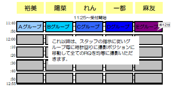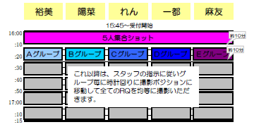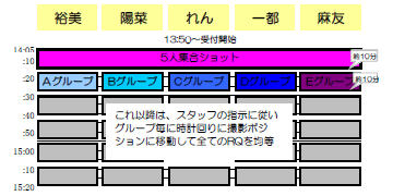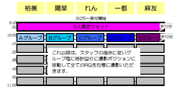 ■ 撮影グループにつきましては当日受付の際にお渡しいたします参加証にてご確認お願いいたします。