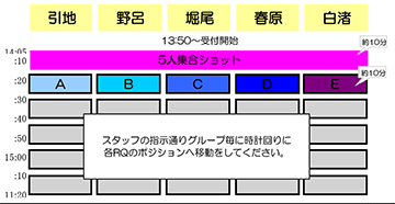 ■ 撮影グループにつきましては当日受付の際にお渡しいたします参加証にてご確認お願いいたします。